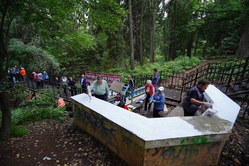 На ул. Короткова учащиеся и педагоги школы № 71, кадеты, активисты Движения первых, Совета отцов, мамы погибших участников специальной военной операции, сотрудники Администрации Устиновского района расчистили родник, расположенный в верховье речки Чемошурки. Они не просто собрали мусор и опавшую листву, но и покрасили бетонное ограждение, козырек, скамейки.