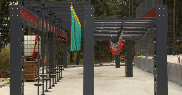 В Ёлки-парке уже полностью смонтирован уникальный для нашего региона многофункциональный комплекс «Русский ниндзя», предназначенный для занятий спортом на открытом воздухе. Основной элемент комплекса - 24-метровая рама, оснащенная множеством разнообразных снарядов - рули, доски, канаты, рукоходы, крутящиеся кольца и др. Рама ориентирована на развитие координации, ловкости, силы рук и плечевого пояса, а также позволяет отрабатывать элементы скалолазания. Площадка будет оснащена травмобезопасным покрытием.