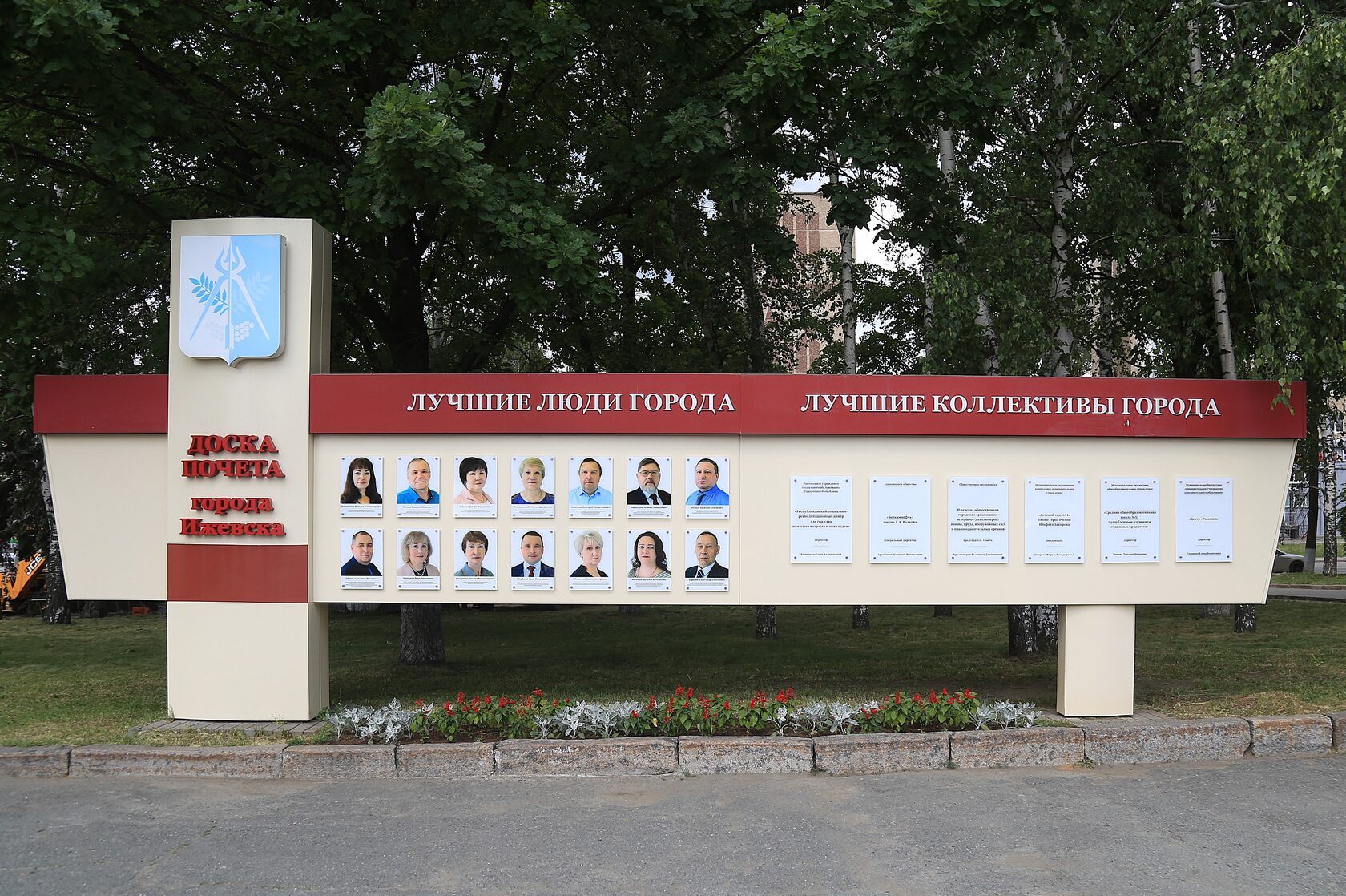Доска почета Ижевска ежегодно обновляется к Дню города, начиная с 2017 года. Здесь размещаются 14 фотографий граждан и 6 стендов трудовых коллективов, которые внесли значительный вклад в социально-экономическое развитие города.
