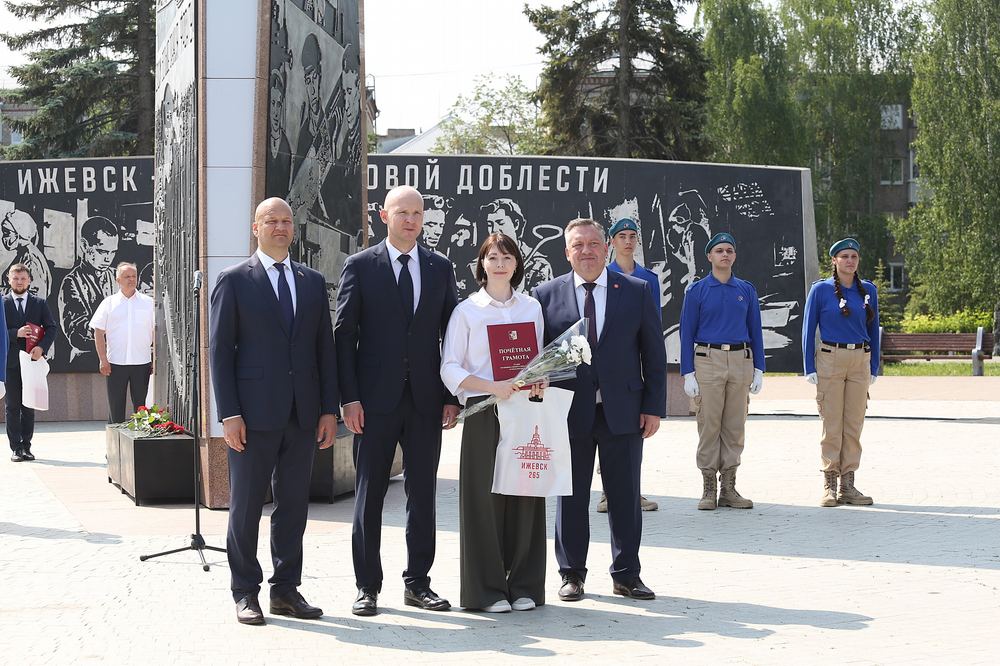 Участникам мероприятия напомнили, что пять лет назад, 2 июля 2020 года, Указом Президента Российской Федерации Владимира Путина Ижевск был удостоен высокого звания «Город трудовой доблести».